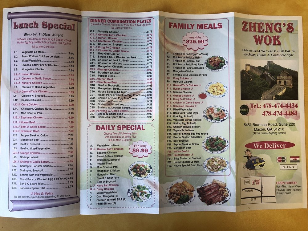 Welcome to Zheng’s Wok, a delightful oasis for Chinese cuisine in Macon, GA! This restaurant is perfect for dinner with friends or a quick takeout after a long day. Renowned for its American Chinese dishes, the menu boasts temptations like flavorful Bourbon Chicken, crispy crab rangoons, and satisfying General Tso's chicken.